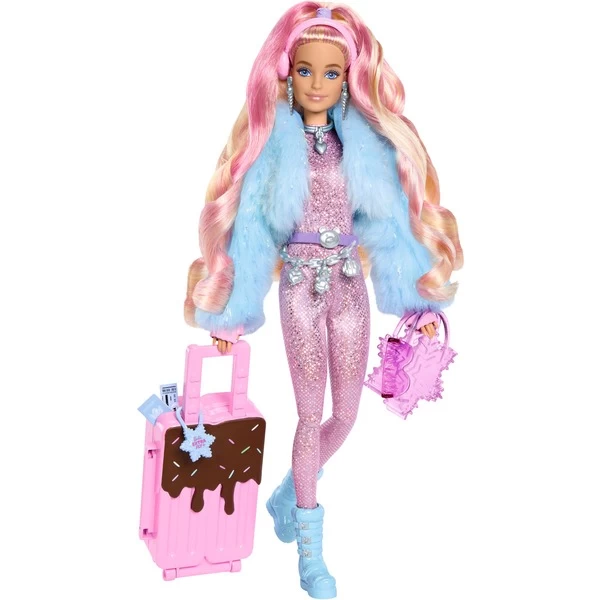 Die Barbie-Puppen aus der Serie Extra Fly sind bereit für den Urlaub – und sie reisen mit Stil! Ausgefallene Moden, die jeweils zu unterschiedlichen Reisezielen passen, zeichnen diese Puppen aus. Mit dabei: Tolles Zubehör zum Thema Reise. Diese Barbie-Puppe ist in ihrem Winter-Outfit bereit für die Skipiste! Sie unterstreicht ihren selbstbewussten Winterstil mit einem blauen Pelzmantel und einem glitzernden pinkfarbenen Skianzug, der zu ihrem langen, pinkfarbenen Haar passt.Art.-Nr.: 1919231
