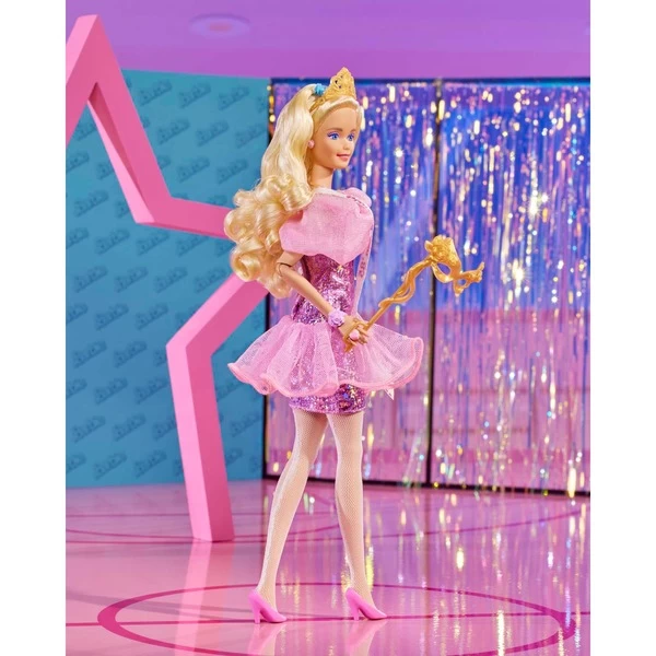 Mit dieser Barbie-Puppe setzte sich die Serie aus den von den 80ern inspirierten Puppen fort: Die Rewind-Serie erinnert an die beliebtesten Popkultur-Looks aus dieser Zeit – mit vielen nostalgischen Details. Diese Barbie-Puppe trägt stolz ihre Schärpe als Ballkönigin von 1985 und setzt sich in einem rosa Paillettenkleid die Krone auf. Dramatische Chiffon-Overlays an Mieder und Rock sorgen für ein großes Volumen. Ihre voluminösen blonden Locken werden von einem Kranz gekrönt. Eine Korsage, eine dekorative weiße Strumpfhose und rosa Pumps vervollständigen ihr Ensemble. Als Zubehör sind ein Rosenstrauß, eine Polaroidkamera, eine Maske und eine Handtasche mit dabei.Art.-Nr.: 100011059