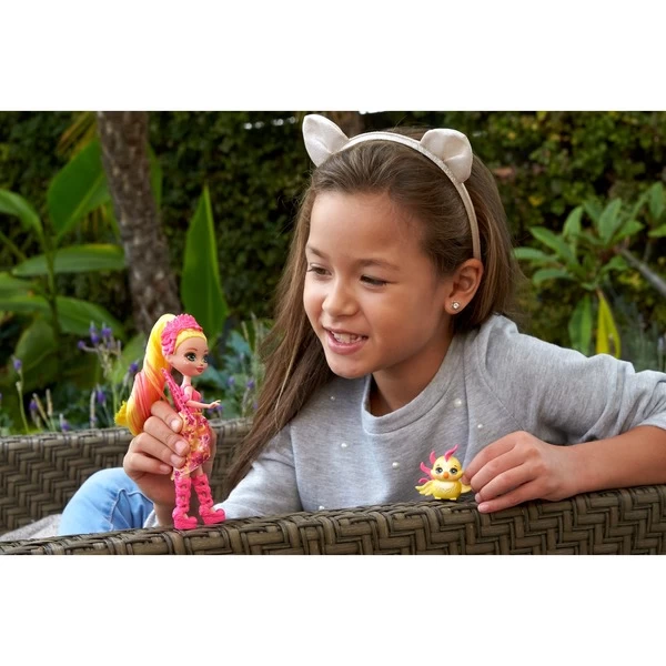 Die Enchantimals sind eine Gruppe liebenswerter Charaktere, die mit ihren besten Tierfreunden auf ganz besondere Weise verbunden sind! Die Falon Phoenix-Puppe (15,2 cm) aus der Royal Enchantimals Kollektion wird von Sunrise begleitet – sie sind immer zusammen und sehen sich sogar ähnlich! Kinder werden die Falon Phoenix Puppe mit ihrem feurigen langen Haar und den glänzenden Flügeln lieben. Für modischen Spielspaß trägt sie eine Krone, einen abnehmbaren Rock und schicke Schuhe. Sie und Tierfreundin Sunrise haben zueinander passende Details, die die Fantasie anregen. Die besondere Verbindung dieser besten Freunde lässt Kinderherzen höher schlagen!Art.-Nr.: 1713365